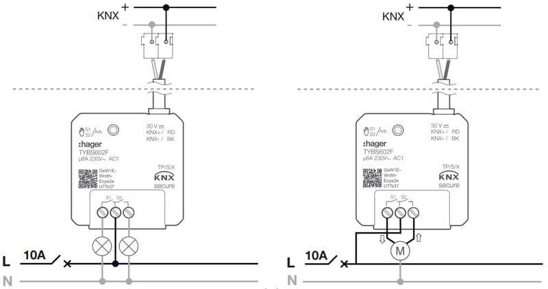 HAGER - Lähtöyksikkö KNX - TYBS602F 2x6A RLV T USEKA