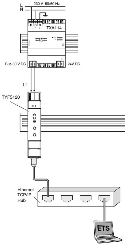 HAGER - Liitäntäportti KNX - TYFS120 IP/KNX Secure 1M DIN