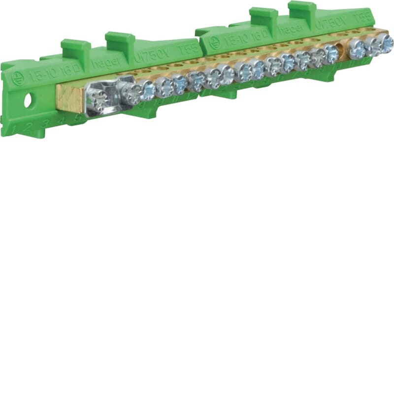 Haaroitusliitin maadoitus 17-osainen, väri vihreä Maadoitusliitin 17-napainen, asennus DIN-kiskolle pystysuuntaisesti tai 12x2 kiskolle vaakasuuntaisesti. Ruuviliittimet 1x25 / 8x16 / 8x10 mm2. Kiinnitysalustan väri vihreä, liitinrima messingistä. DIN-kiskoasennukseen tilaa lisätarvikkeena 2 x KZ060.