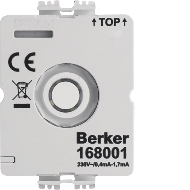 LED-moduuli kiertokytimille ja -painikkeille, 230VAC, ilmannollajohdinliityntää LED-merkkivalomoduuli ilman nollakosketinta kiertokytkimille ja kiertopainikkeille. Helppo kiinnitys ja kytkentä kalustemoduuliin etupuolelta liitäntäjousilla ilman lisäjohdotustarvetta. Käytettävissä vaihtoehtoisesti kontrolli- tai hakuvalona.