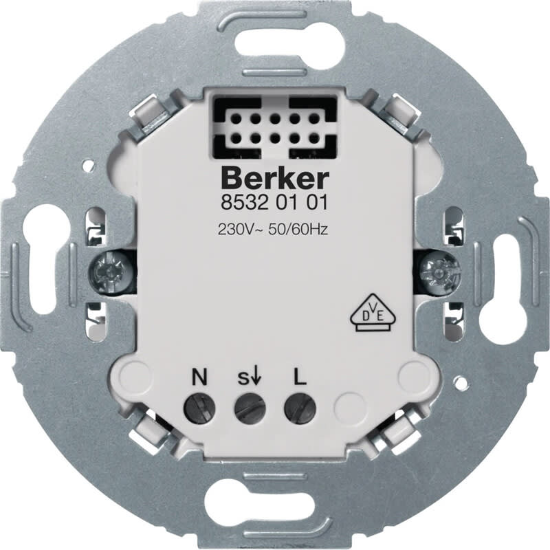 Orjayksikkörunko Berker.NET 3-johdin, liiketunnistinasennuksen laajennukseen käytäväsovelluksissa. Soveltuuliiketunnistinyksiköille R.Classic/1930 -sarjoista. Laajennusyksikkö liiketunnistimelle asennuskalustesarjat Berker Serie R.classic ja Serie 1930 pyöreillä peitelevyillä