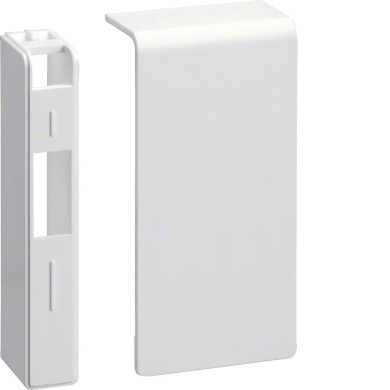 Päätykappale päälle asennettava halogeeniton kanavalle SL 20x80mmliikenteenvalkoinen Päätykappale vasen/oikea jalkalistakanavalle SL 20x80 halogeenittomasta muovista DIN EN 50085-1 mukaan johtokanavajärjestelmille. Päätykappale kiinnittyy kanavan kannen reunaan peittäen sahausjälkiä, viimeistellen asennuksen lopputuloksen ja nopeuttaen asennusta. 2-osaisen päätykappaleen kätisyys saadaan vaihdettua siirtämällä sivuseinäosa kappaleen toiseen päähän.