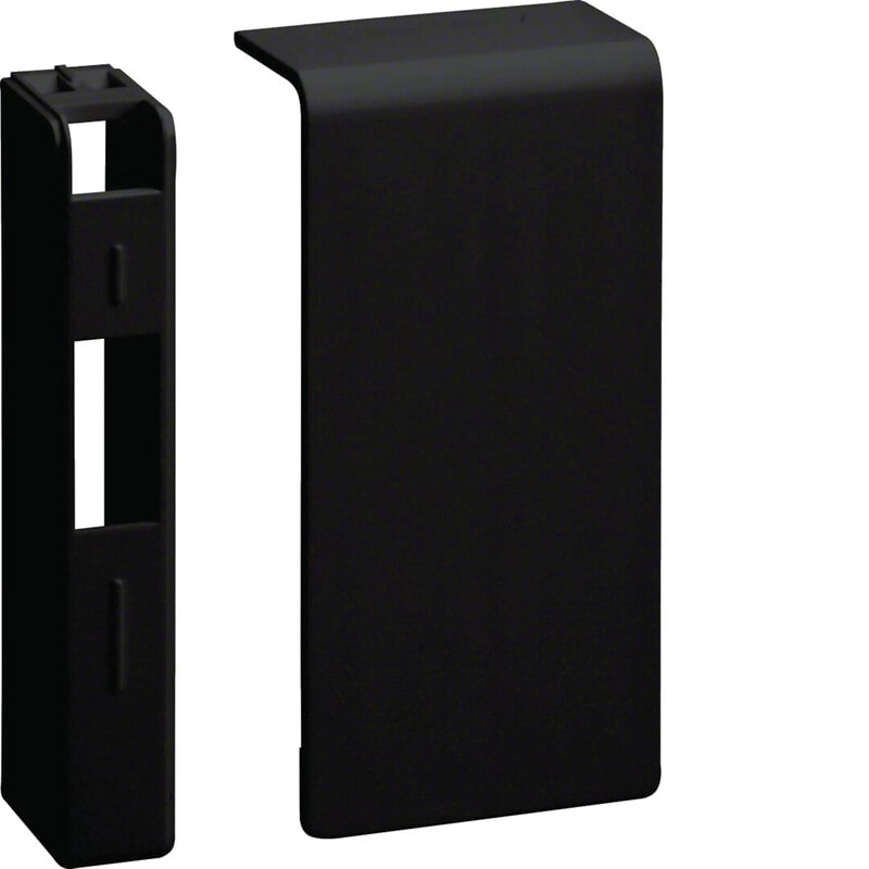 Päätykappale PC/ABS SL20x80, voidaan käyttää myös jatkokappaleenakannelle ilman päätyosaa, grafiitinmusta Päätykappale vasen/oikea jalkalistakanavalle SL 20x80 halogeenittomasta muovista DIN EN 50085-1 mukaan johtokanavajärjestelmille. Päätykappale kiinnittyy kanavan kannen reunaan peittäen sahausjälkiä, viimeistellen asennuksen lopputuloksen ja nopeuttaen asennusta. 2-osaisen päätykappaleen kätisyys saadaan vaihdettua siirtämällä sivuseinäosa kappaleen toiseen päähän.