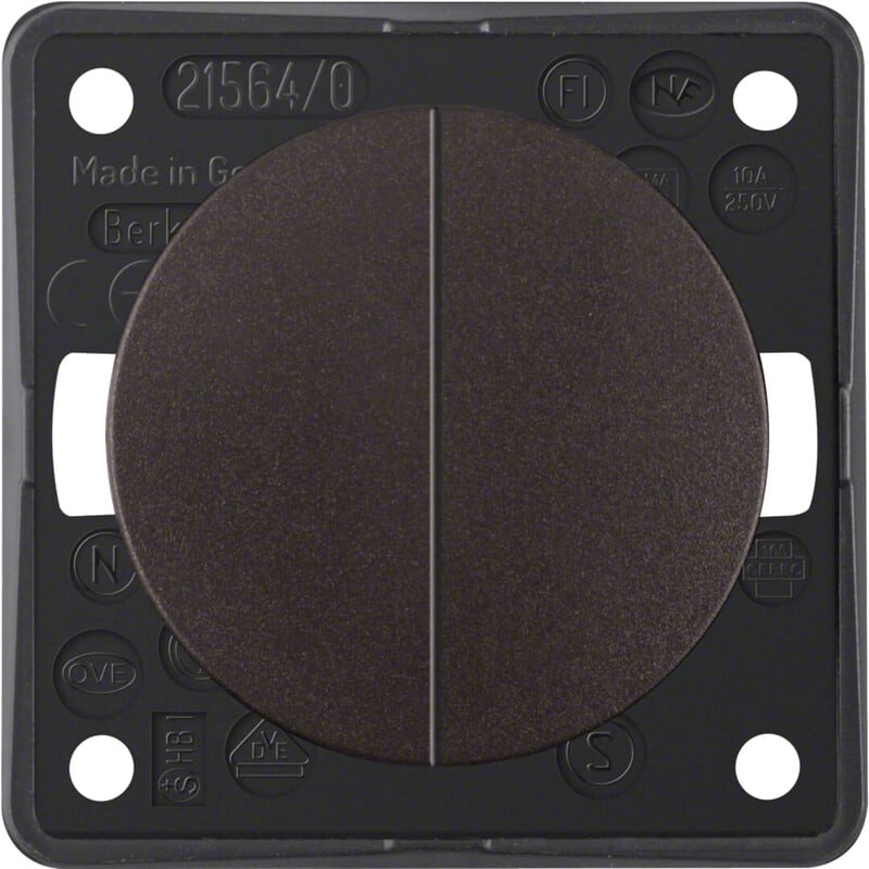 Kruunupainike 10A/250V, Integro Flow/Pure, ruskea matta Kruunupainike 2 sulkeutuvaa kosketinta (5) nimellisjännite 250VAC, kytkentävirta 10AX. Asennus 4-pistekiinnityksellä paneelipintoihin. Varustettavissakosketussuojarasialla takapinnan liitäntöjen suojaamiseksi.