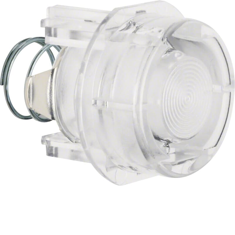 Painike Hager S.1/B.3/B.7/R.1/R.3 kirkas Ø26.6 E10 lamp. Jousella varustettu painikelinssi painikke- ja merkkivalorungolle 5101 ja 510110, käytettäessä kalustetta painikkeena tai merkkivalopainikkeena. Linssin väri kirkas.