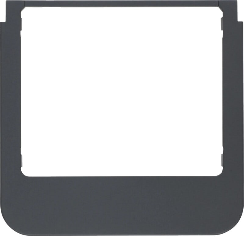 Design-kehys huonesäätimelle 75740101 Berker Q.1 samettinen antrasiitin musta Peitelevy KNX Touch Control -kosketusnäytölle, mitat (L x K) 93,9 x 90,9 mm, peiteosan korkeus asennuspinnasta 4 mm. Voidaan käyttää myös audio-oviasemien integrointiin käyttöön valitun näytön muotokielen ja kehysvärin sovittamiseksi käyttöön valitun Berker-asennuskalustesarjan kanssa.