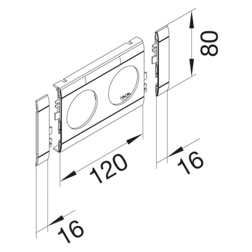 Peitelevy 2-osaisille kanavapistorasiamoduuleille, soveltuu kanavillekansi 80 mm, halogeeniton, väri liikenteenvalkoinen Modulaarinen peitelevy 2-osaisille kanavapistorasioille, irrotettavin päätypaloin ydistettävissä osaksi kalusteyhdistelmiä. Kanavajärjestelmät: BRP, BRHP, BKIS, DA Kannen leveys: 80 mm Materiaali: ABS Halogeeniton: kyllä Väri: liikenteenvalkoinen RAL-värikoodi: 9016 Pituus: 152 mm Aukkojen halkaisija: 48 mm Merkintäikkuna: ei Jatkettava: kyllä