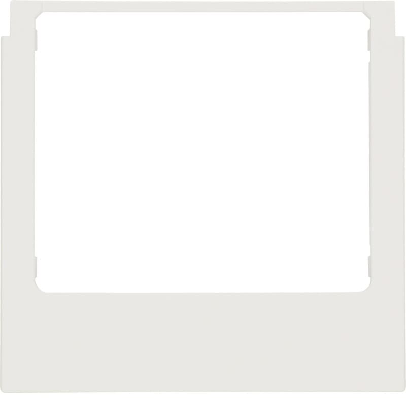 Design-kehys huonesäätimelle 75740101 Berker K.1 kiiltävä puhtaanvalkoinen Peitelevy KNX Touch Control -kosketusnäytölle, mitat (L x K) 93,9 x 90,9 mm, peiteosan korkeus asennuspinnasta 4 mm. Voidaan käyttää myös audio-oviasemien integrointiin käyttöön valitun näytön muotokielen ja kehysvärin sovittamiseksi käyttöön valitun Berker-asennuskalustesarjan kanssa.