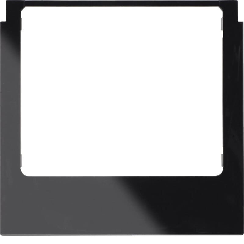 Design-kehys huonesäätimelle 75740101 Berker R.1 kiiltävä musta Peitelevy KNX Touch Control -kosketusnäytölle, mitat (L x K) 93,9 x 90,9 mm, peiteosan korkeus asennuspinnasta 4 mm. Voidaan käyttää myös audio-oviasemien integrointiin käyttöön valitun näytön muotokielen ja kehysvärin sovittamiseksi käyttöön valitun Berker-asennuskalustesarjan kanssa.