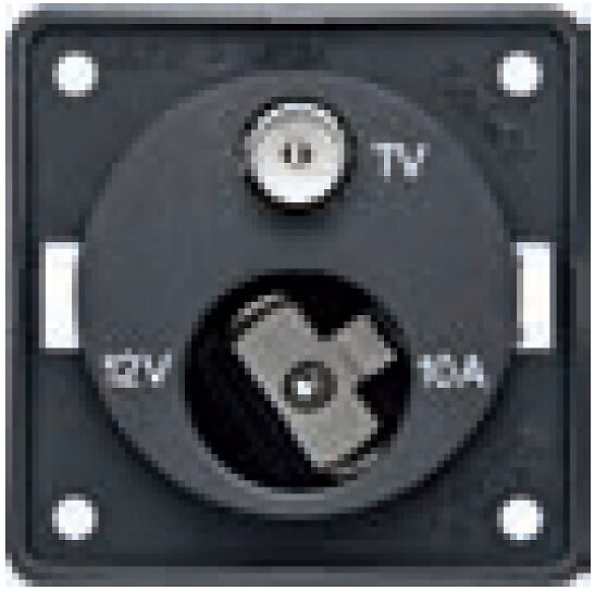 Pistorasia 12 V + TV antrasiitti matta Pistorasia 12 V + TV Käyttöjännite 12 VDC Nimellisvirta maks. 10 A Maanpäällisten tai kaapeliliitettyjen TV -signaalien vastaanottoon ja samanaikaisesti soveltuvien laitteiden tehonsyöttöön. Ei soveltuva peitelevyille saranoiduilla kansilla. − IEC- ja F-pistokkeella − jousiliittimillä pikakiinnitykseen