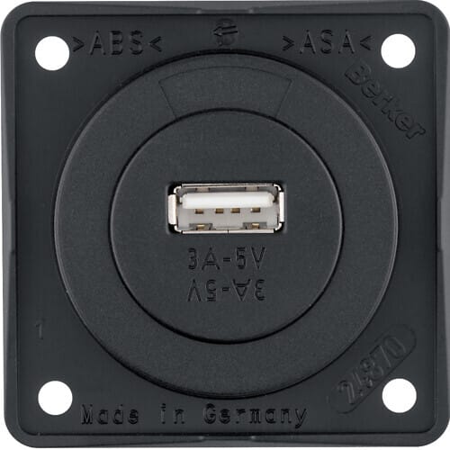 USB-latauspistorasia 1-kanavainen. maksimi latausvirta 3A. syöttöjännite 8-34VDC. väri kehys musta matta. keskiö musta. 15cmliitäntäkaapelilla USB-latauspistorasia 12 V, 1-osainen, 3A, Integro Syöttöjännite 12 V AC Lähtöjännite 5 V DC (± 5 %) Lähtövirta maksimi 3 A USB-liityntä DIN EN 62680-3 mukaan - Mobiililaitteiden kuten tabletit, älypuhelimet, navigaattorit ja digitaalikamerat, lataukseen USB-kaapelin kanssa - kahdella USB tyyppi A liitynnällä - ruuviliittimillä - tiedonsiirto ei mahdollista!