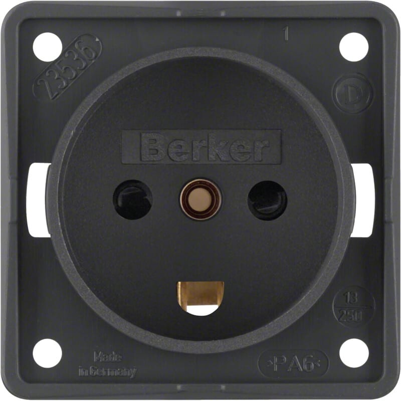 Pistorasia kosketussuojattu maadoituskoskettimella 13A/250VAC 2N+PE Tanska-version standardi DK/SR 107-2-D1, asennus paneeliin4-pistekiinnityksellä, matta antrasiitti Pistorasia maadoituskoskettimella TANSKA - Korotettu kosketussuojaus - ruuviliittimet Nimellisjännite 250 VAC Nimellisvirta 13 A Standardi DK/SR 107-2-D1 Kytkentäliittimet IEC 60884-1 mukaan Korotettu kosketussuojaus (lapsisuojaus) IEC 60884-1 mukaan − 2-napainen + maadoitus