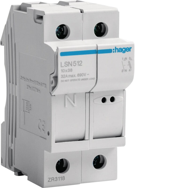 HAGER - Putkisulakealusta - LSN512 1L+N 32A 10x38 2M