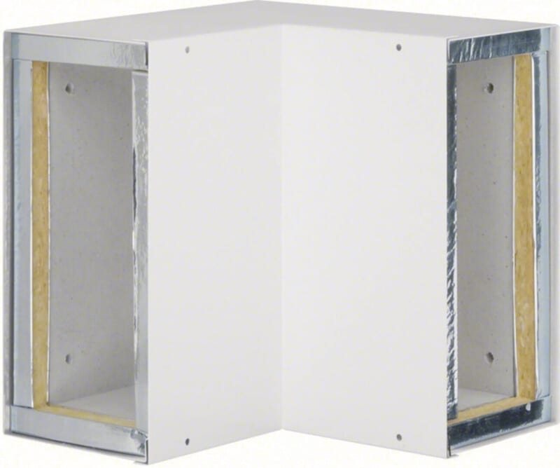 Sisäkulma palonsuojakanavalle FWK 3E luokka E30 100x260mmliikenteenvalkoinen Sisäkulma palosuojakanavalle FWK3E9926009016, suunnanmuutoksiin palosuojakanava-asennuksissa. Muoto-osa on varusettu naarasponteilla kanavaliitoksille. Pintamateriaali teräs paloa suojaavan kipsilevyeristeen päällä.