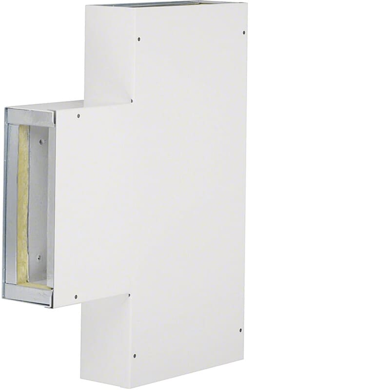T-kappale palonsuojakanavalle FWK 3E luokka E30 50x210mmliikenteenvalkoinen T-kappale palosuojakanavalle FWK3E5021009016, suunnanmuutoksiin palosuojakanava-asennuksissa. Muoto-osa on varusettu naarasponteilla kanavaliitoksille. Pintamateriaali teräs paloa suojaavan kipsilevyeristeen päällä.