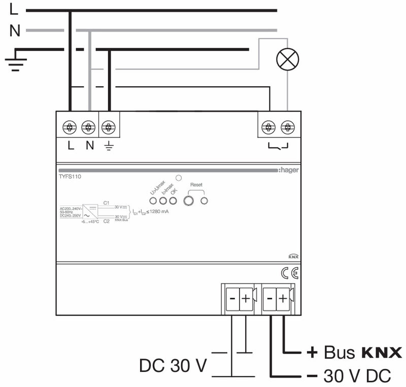 HAGER - Teholähde KNX - TYFS110 2K 1280mA 30VDC DIN