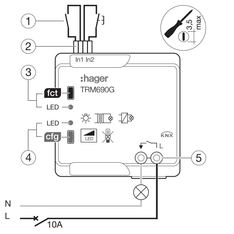 HAGER - Tulo/lähtöyksikkö KNX - TRM690G 70/200W RLCD+2PV uppo