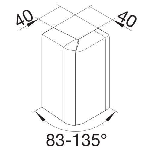 Ulkokulma säädettävä 83-135 ast PC/ABS SL20x115 grafiitinmusta Säädettävä ulkokulma jalkalistakanavalle SL 20x115 halogeenittomasta muovista DIN EN 50085-1 mukaan johtokanavajärjestelmille. Kulmakappale kiinnittyy kanavan kannen reunoihin peittäen sahausjälkiä, viimeistellen asennuksen lopputuloksen ja nopeuttaen asennusta.
