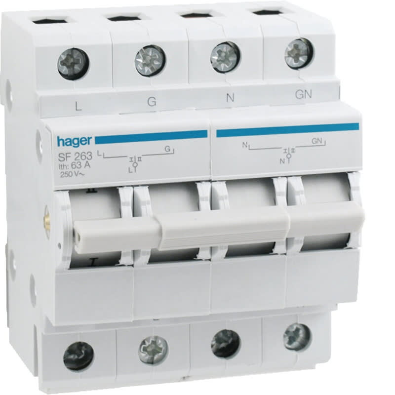 HAGER - Vaihtokytkin - SF263 1-0-2 2N 63A DIN