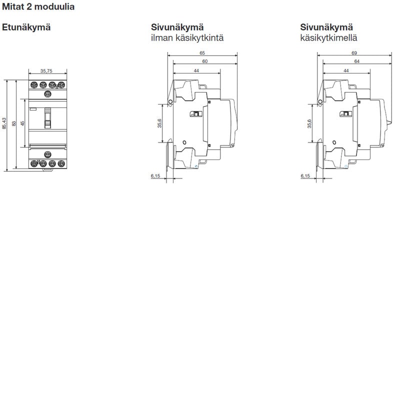 HUOMIO: Mikäli asennat useita tuotteita rinnakkain, asenna joka toisen moduulin väliin välimoduuli LZ060 (1/2 moduulia).