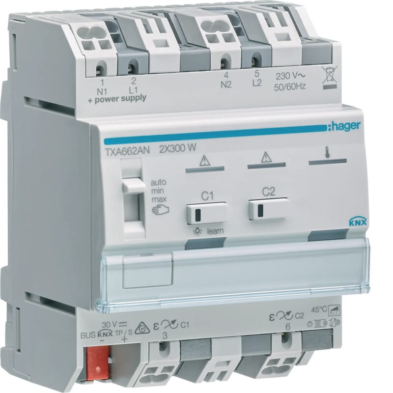HAGER - Valonsäädin KNX - TXA662AN 2x300W RLCPD DIN