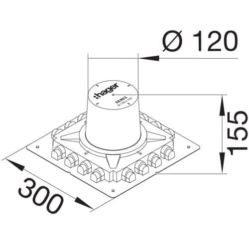 Valumuotti lattiapistorasialle R02 korkeus 155 mm Valumuotti lattiapistorasioiden BSR02 asentamiseksi pintavaluun. Liityntä neljältä sivulta putkilla tai kaapelikanavalla UK190x28.
