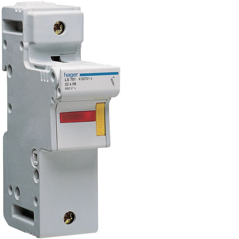 Putkisulakealusta 1-napainen 125A 22x58 mm, 1.5 moduulia, 690VAC Putkisulakealustalla lisäät helposti laitevalmistuksessa, teollisuuden kojeistoissa ja kaupunki-infran lähtöjen suojaksi vaihtosähköverkolle tarkoitetut 22 x 58 mm mitoitetut keraamiset putkisulakkeet. DIN-mitoitus mahdollistaa asennuksen DIN-kiskolle moduulimitoitettuihin keskuksiin ja koteloihin.