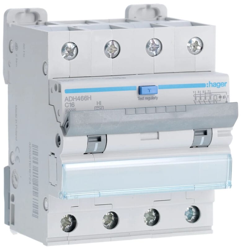 HAGER - Vikavirtajohdonsuojakatkaisija - ADH466H 30mA A-HI/4x16A C 6kA