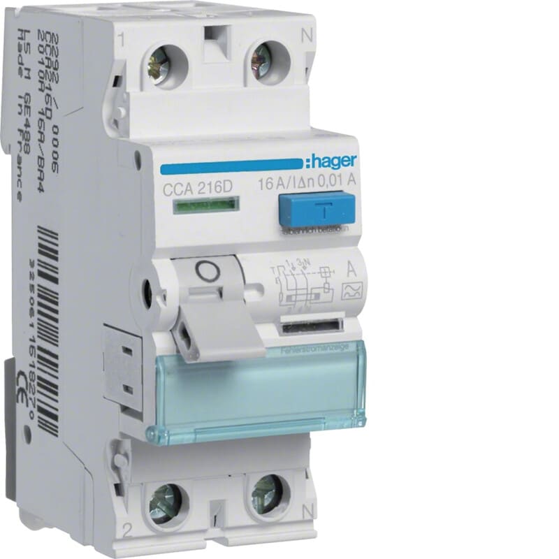 HAGER - Vikavirtasuojakytkin A-tyyppi - CCA216D 10mA/2x16A