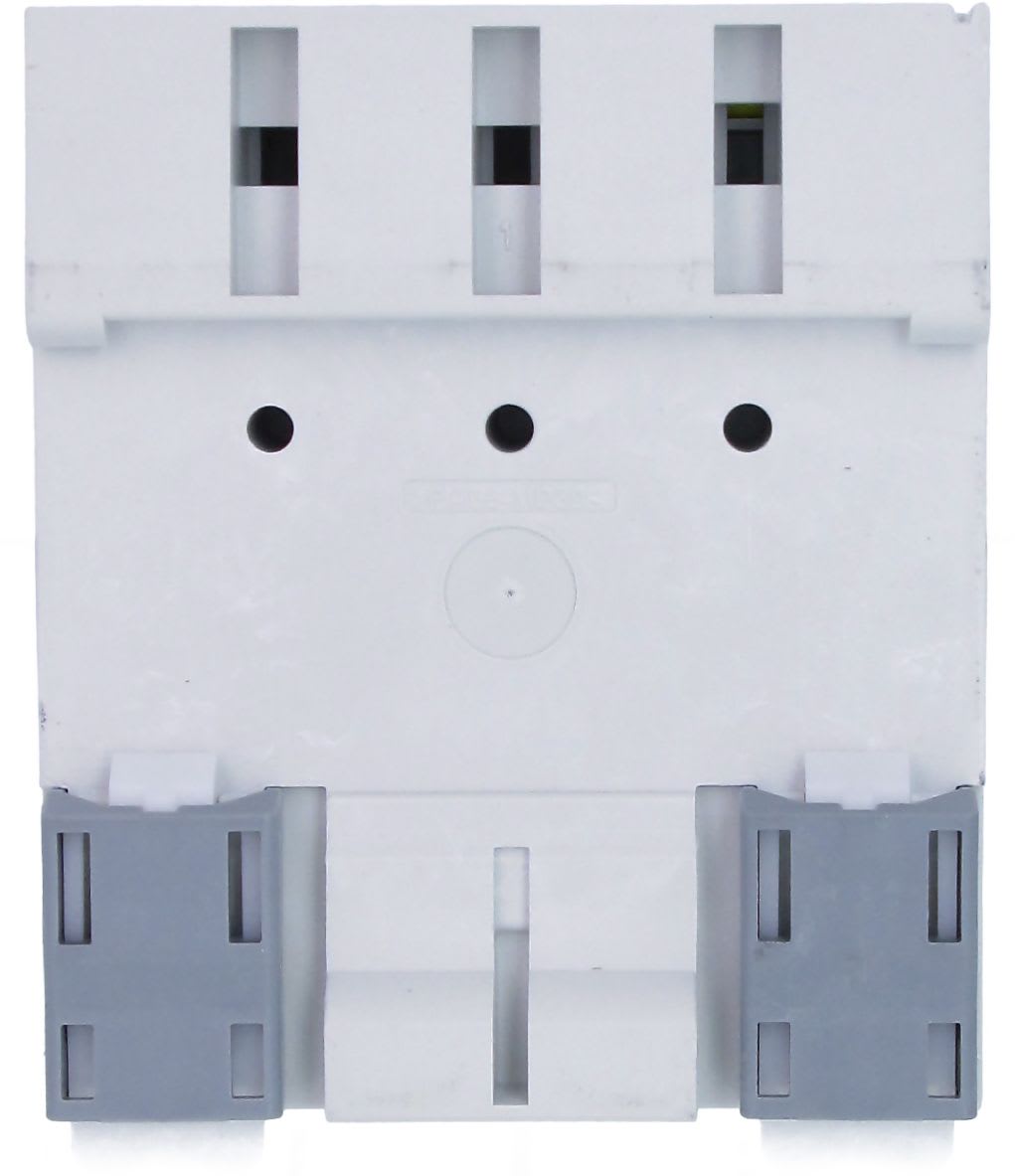 Vikavirtasuojakatkaisija 4-napainen 3L+N. nimellisvirta 25A.laukaisuherkkyys 30mA A-tyyppi. koko 4 moduulia. piireille nimellisjännitteellä 400VAC Vikavirtasuojakatkaisija (RCD) standardien EN 61008-1, DIN EN 61008-2-1 ja VDE 0664 osa 10 + 11 mukaan, kosketussuojaus IP2x normin DIN VDE 0106 osa 100 mukaisesti. Soveltuu myös jälkiasennettavien ryhmien suojaukseen (kiinnitys ilma työkaluja). Kytkentäliittimet varustettua johdinsivusuojalla. Kaksoisliitin kaapeli- ja virtakiskoliitokselle alapuolella, erillinen sininen testipainike vikavirtapiirin testaukseen . Moduuli on varustettu saranakantisella merkintäliuskataskulla ryhmämerkintöjä varten.