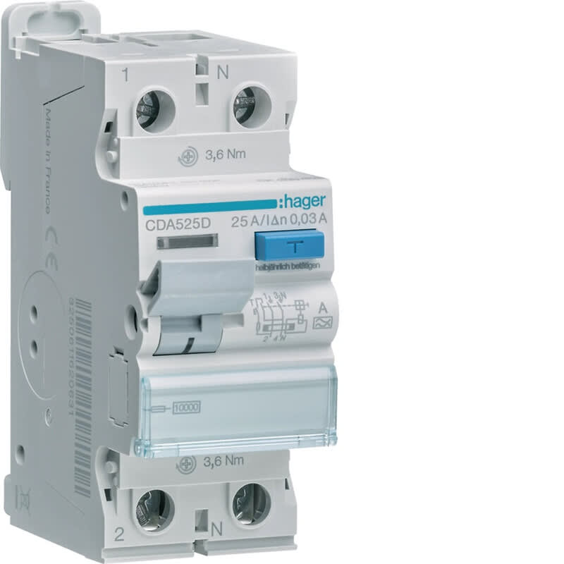 HAGER - Vikavirtasuojakytkin - CDA525D 30mA A/2x25A 10kA