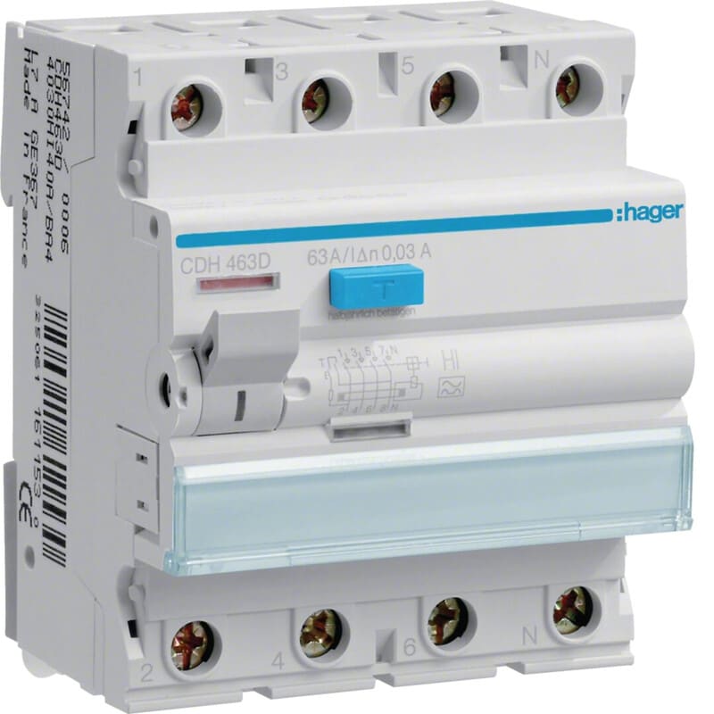 HAGER - Vikavirtasuojakytkin HI - CDH463K 4x63A 30mA A-TYYPPI