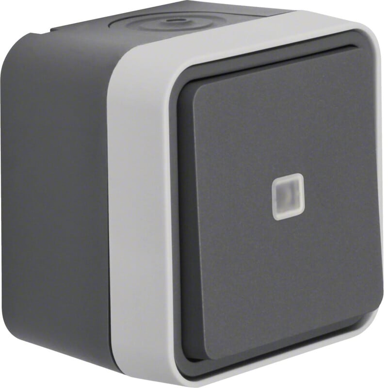 Painike vaihtokoskettimella ja merkkivalolla pinta-asennus