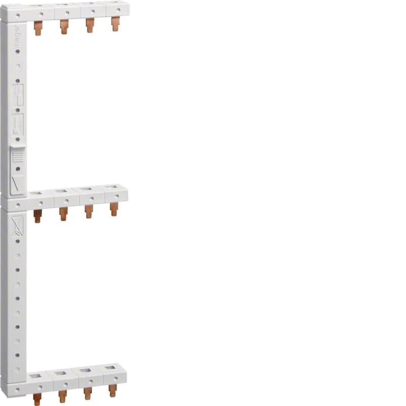 Vaihekisko 3L+N, 3-rivinen 125mm, vasen, pysty yläpuolinen Virtakisko 4-napainen, kaksirivinen, DIN-kiskojen etäisyys 125 mm, oikea pystysuuntaiseen rivien yhdistykseen