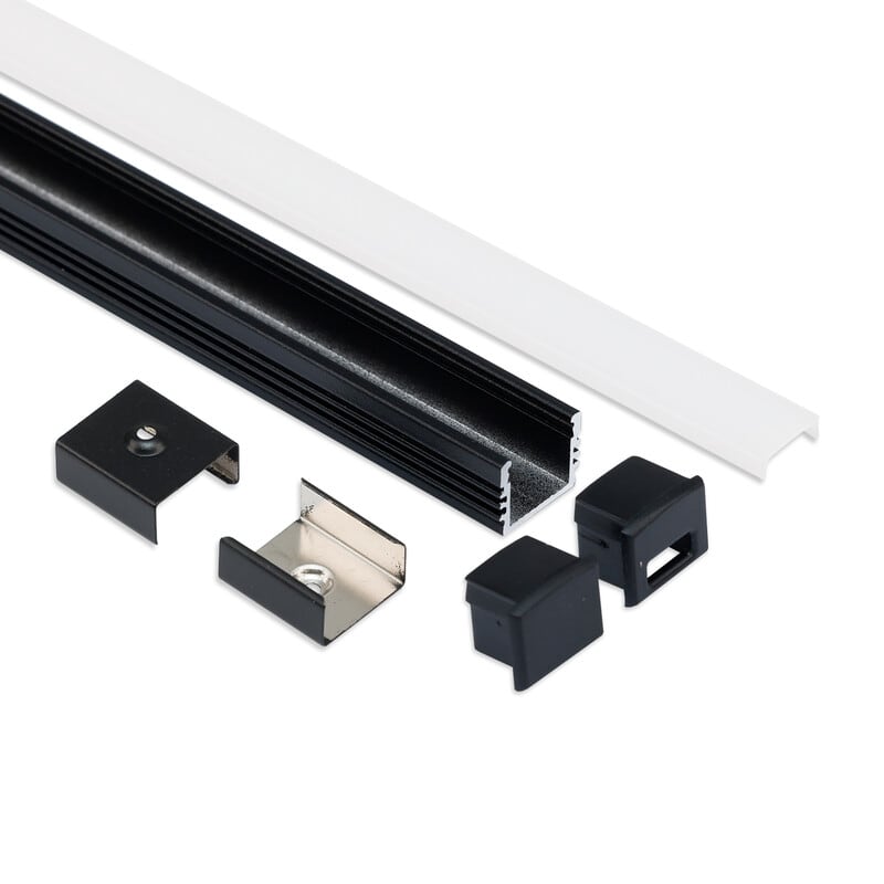PL2 pinta-asennusprofiilisetti musta 200 cm. Galaxy Profiles setillä saa tarpeen vaatiessa tehtyä kaksi eri LED-nauha asennusta. Profiili voidaan sahata kahtia. Setissä profiili ja opaali kansi 2 m sekä kahteen asennukseen tarvittavat päätypalat ja kiinnikkeet. Kiinnikkeiden materiaali kestävä harjattu teräs. Setti sisältää: - 1 kpl 4121909 PL2 LED pinta-as. prof. 200 cm musta - 1 kpl 4121868 Kansi C1 opaali/satiini 200 cm - 2 kpl 4121965 Päätykappale E1B - 2 kpl 4121966 Päätykappale E2B kaapelinläpiviennillä - 5 kpl 4121847 Kiinnike Z01
