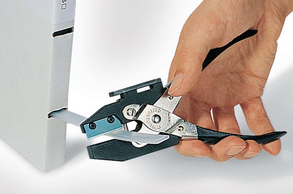 HCT-asennustyökalulla katkaistaan profiili ja tehdään kiinnitysreiät johdinsiteelle tai niitille.