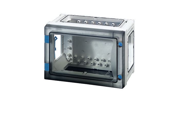 Ovellinen ENYSTAR-keskusjärjestelmä (In = 250 A) on yhdisteltävä keskusjärjestelmä on kaksoiseristetty ja kotelointiluokka IP 66. Järjestelmän komponentit ovat tehty polykarbonaatista SFS-EN 61439-3:n mukaisesti.