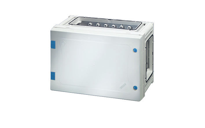 Ovellinen ENYSTAR-keskusjärjestelmä (In = 250 A) on yhdisteltävä keskusjärjestelmä on kaksoiseristetty ja kotelointiluokka IP 66. Järjestelmän komponentit ovat tehty polykarbonaatista SFS-EN 61439-3:n mukaisesti.
