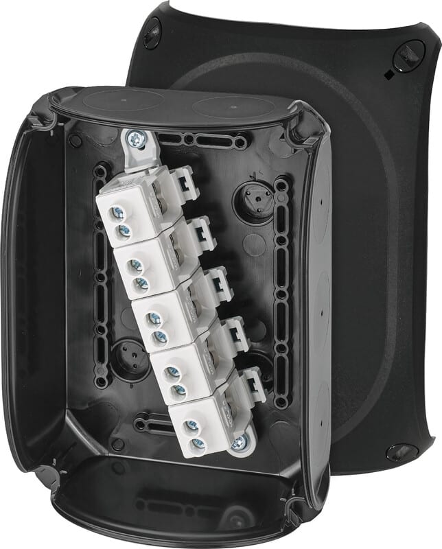 - 5-napainen, per napa 6 x 2,5 mm² ML, 4 x 4 mm² ML, 4 x 6 mm² ML, 4 x 10 mm² ML, 2 x 16 mm² MK