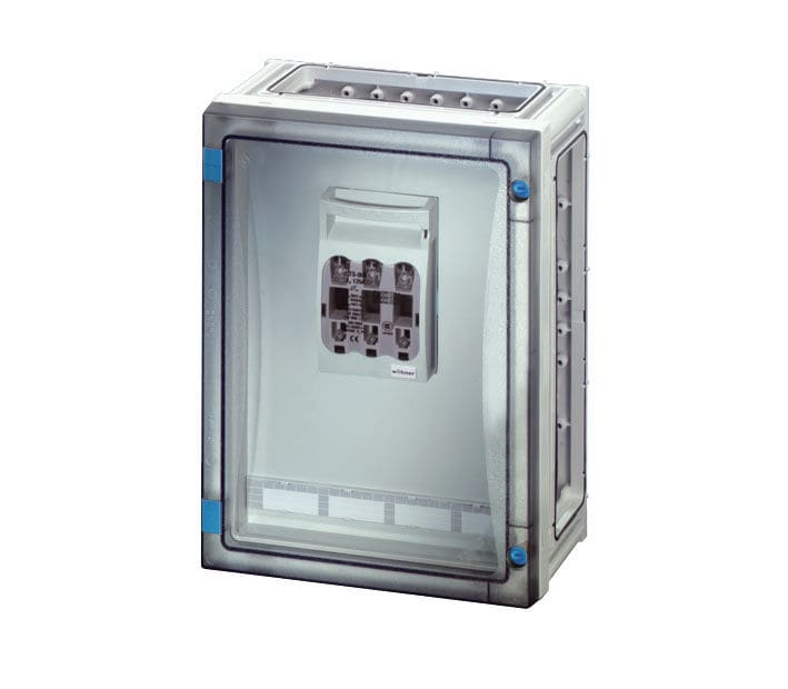 Ovellinen ENYSTAR-keskusjärjestelmä (In = 250 A) on yhdisteltävä keskusjärjestelmä on kaksoiseristetty ja kotelointiluokka IP 66. Järjestelmän komponentit ovat tehty polykarbonaatista SFS-EN 61439-3:n mukaisesti.