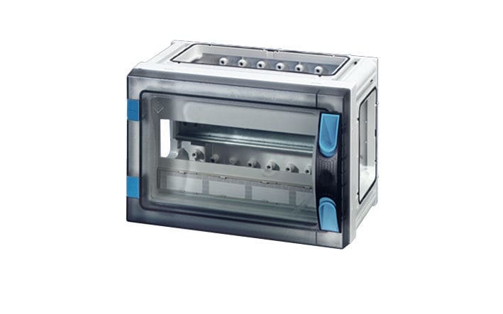 Ovellinen ENYSTAR-keskusjärjestelmä (In = 250 A) on yhdisteltävä keskusjärjestelmä on kaksoiseristetty ja kotelointiluokka IP 66. Järjestelmän komponentit ovat tehty polykarbonaatista SFS-EN 61439-3:n mukaisesti.