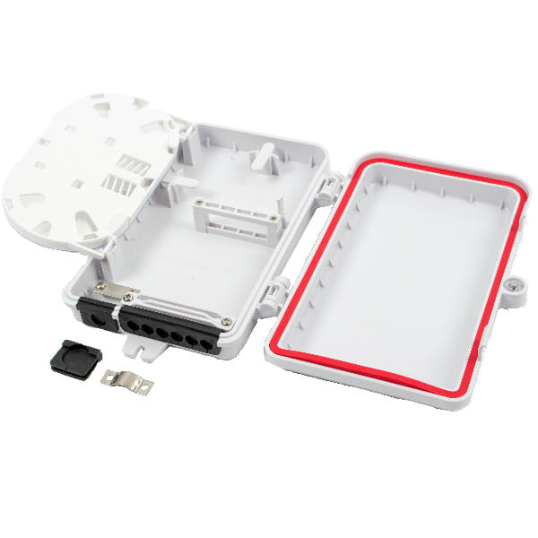 Päätekotelo / Ulkojatkoskotelo, johon saa tarvittaessa 4xSC simplex tai 8xLC dublex. IP55