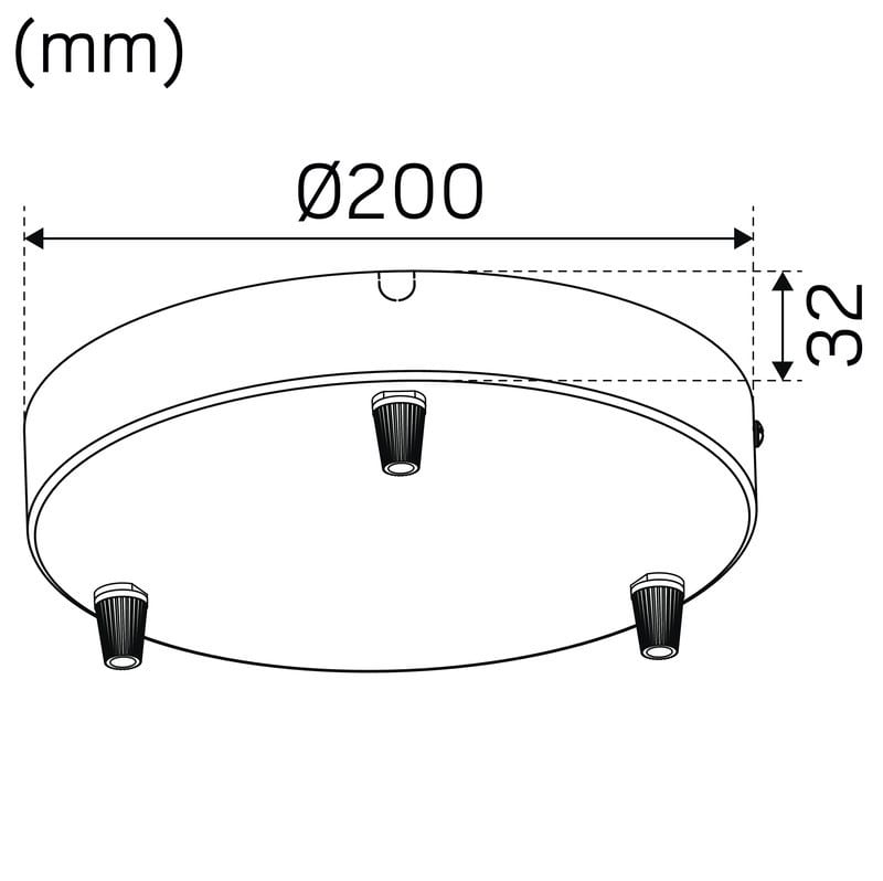 Valkoinen kattokuppi. asennetaan suoraan kattoon tai kattorasiaan. Tarvike kolmelle riippuvalaisimelle. Ø200mm. korkeus 32mm