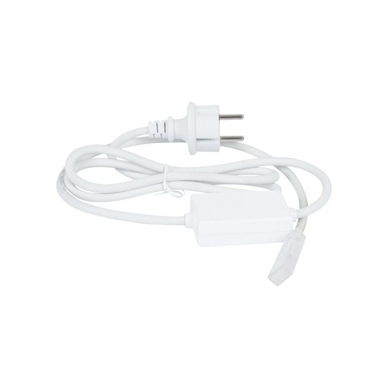 Kytkentäsarja tuotteeseen 230V LEDstrip FDIM IP44. Sisältää kytkentäjohdon 80cm maadoitetulla pistokkeella ja vaihehimmennettävällä DC-muuntajalla, päätetulpan, kaksi kutistesukkaa ja liiman.