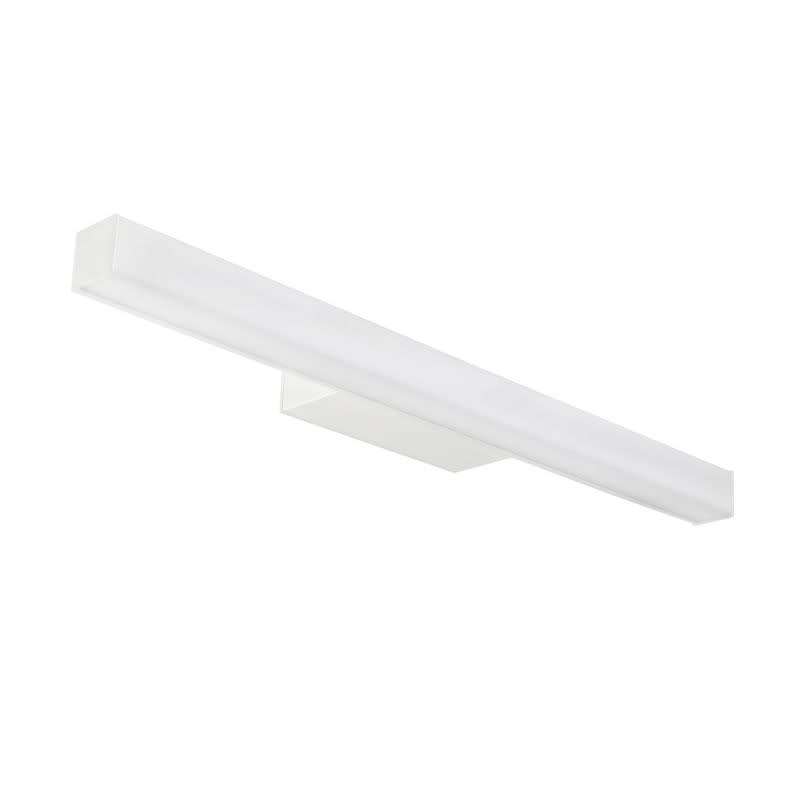 Ajattomasti muotoiltu peilivalaisin, valkoiseksi maalattua alumiinia (RAL 9016) huurretulla kuvulla. Antaa tasaisen valokuvion. Erittäin hyvä värintoisto, RA>90 IP44-luokitus ja täyttää pienten kylpyhuoneiden vaatimukset julkisissa ja yksityisissä tiloissa. Voidaan asentaa seinää vasten ja kylpyhuoneen kaapin päälle mukana tulevalla kiinnikkeellä, mukana myös koroke johtojen pinta-asennusta varten. Vaihehimmennettävä liitäntälaite integroitu valaisimeen suoraa 230V kytkentää varten. Kaksoisläpiviennit, joista toinen keskitetty, sekä pikaliitin ketjutusta varten.