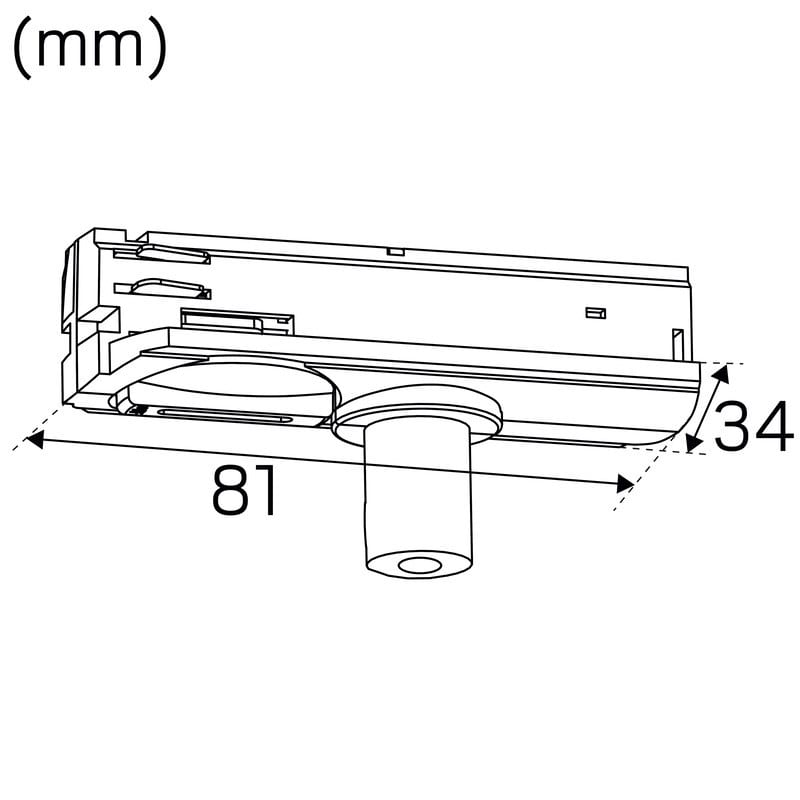 Adapteri vedonpoistolla. 1-vaihe Valkoinen. LiteTrac-kiskojärjestelmään.