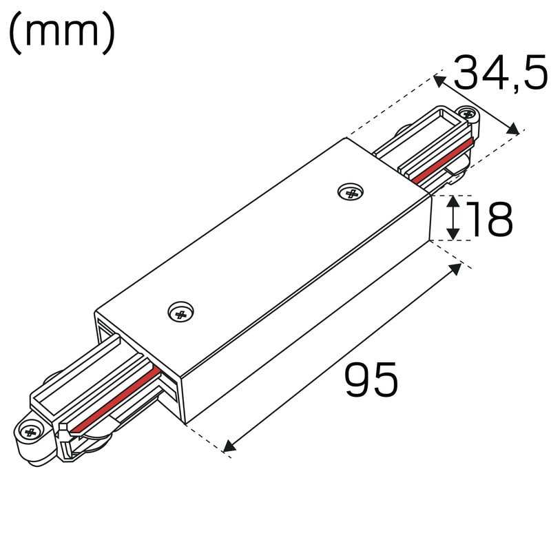 Keskiliitin 1-vaihe Valkoinen. LiteTrac-kiskojärjestelmään.