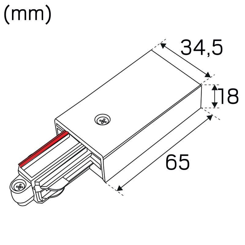 Liitäntäosa 1-vaihe Vasen Musta, LiteTrac-kiskojärjestelmään.