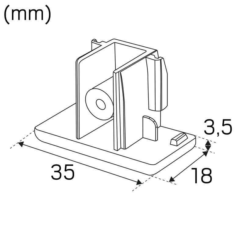 Päätykappale 1-vaihe Valkoinen. LiteTrac-kiskojärjestelmään.