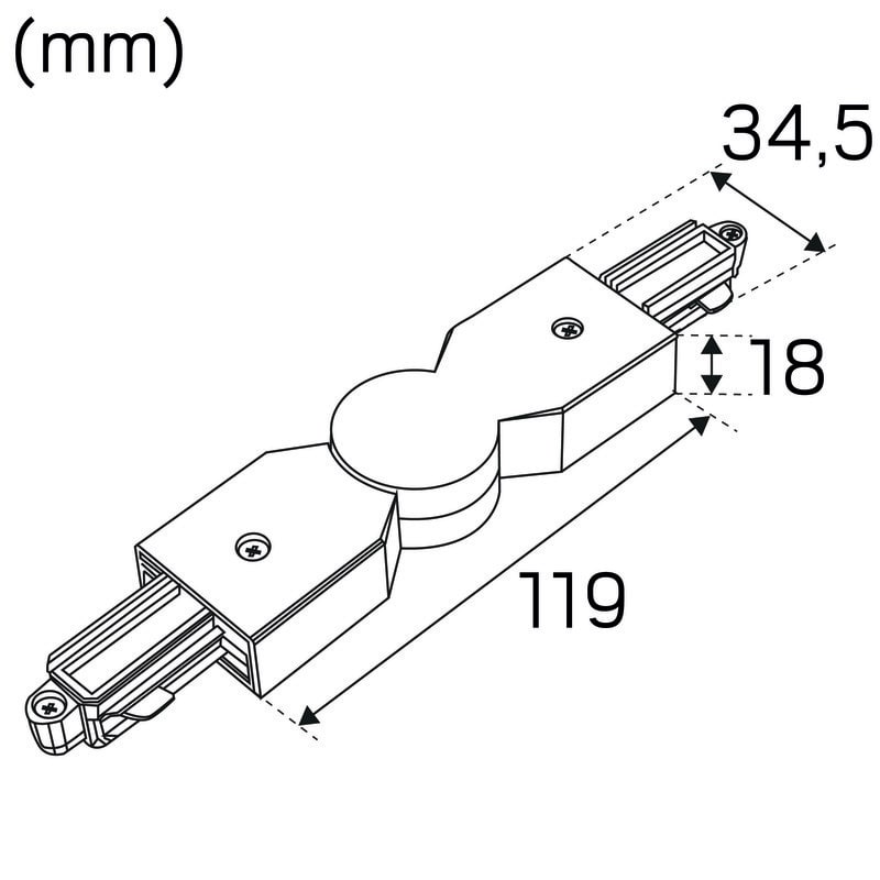 Säädettävä jatko 1-vaihe Musta, LiteTrac-kiskojärjestelmään.